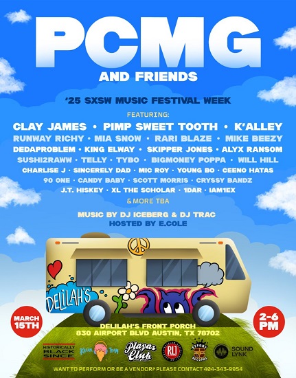 Playas Club Music Group’s CEO Clay James is no stranger to Austin, Texas and the culture of SXSW. Back in 2015, Clay was discovered by some associates of Snoop Dogg while he was performing during SXSW on the ‘Black Auerbach & Friends’ Stage. This resulted in Clay James signing his first record deal with Snoop’s Doggystyle Records imprint. Nowadays, Clay has been building up his own roster at Playas Club Music Group which consists of Charlise J, Alyx Ransom, Sincerely Dad, Young Bo, King Elway, and his business partner and co-founder Pimp Sweet Tooth. On Saturday March 15th PCMG is having its 3rd Annual ‘PCMG & Friends’ Concert at Delilah’s Front Porch in Austin, Texas 2-6pm. Music will be handled by DJ Iceberg and DJ Trac. The event will be hosted by Atlanta upcoming comedian E.Cole. This concert is sponsored by EFFORT Records, Kream Team LLC, Rocklan One Radio, Sound Lynk Studios, and Historically Black Since. Check out the full line up below. More acts and special guests will be announced weekly. Want to perform or be a vendor? Please contact 404-343-9954